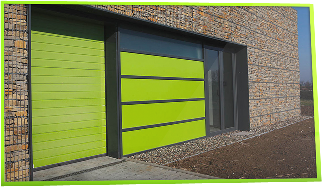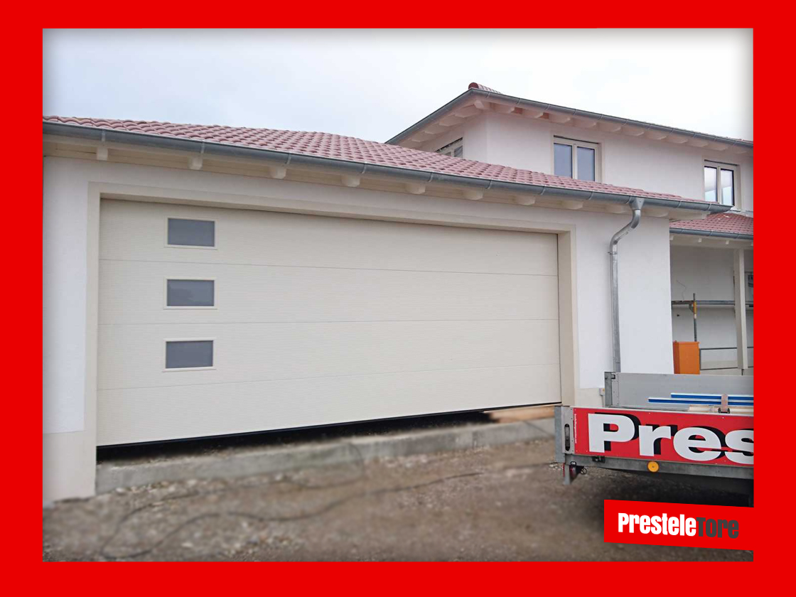 Sektionaltore öffnen senkrecht und liegen Platz sparend unter der Decke.